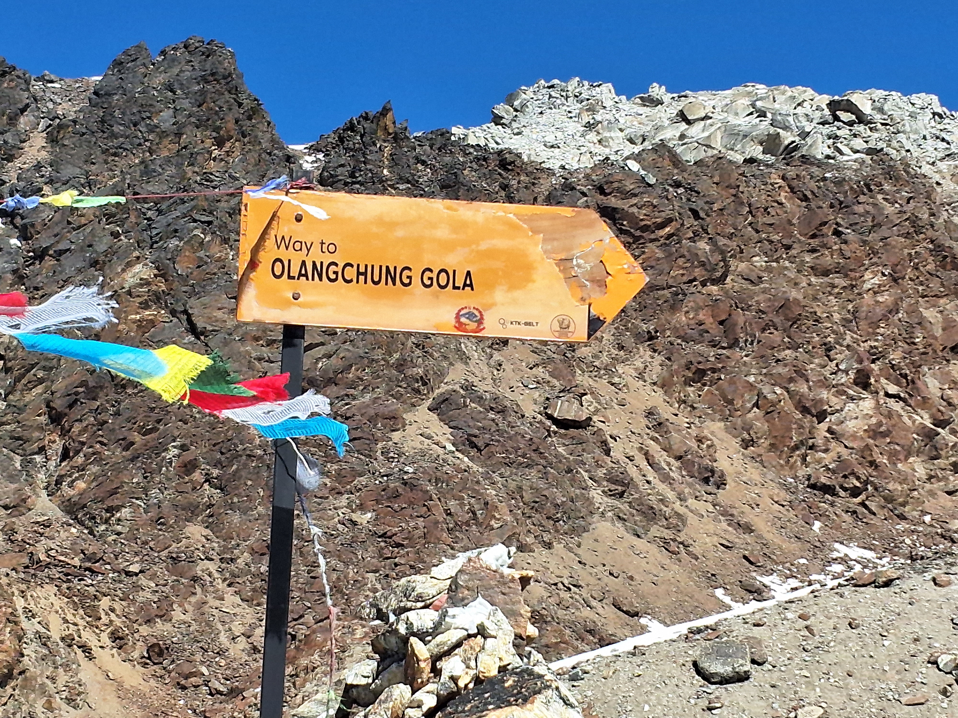 3-hour ascent to Nango La pass (4770 m) with views of glaciers and moraines. Long descent to forest camp. 7.5 hours walk. Tent.